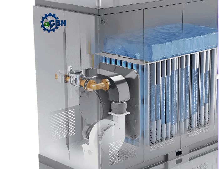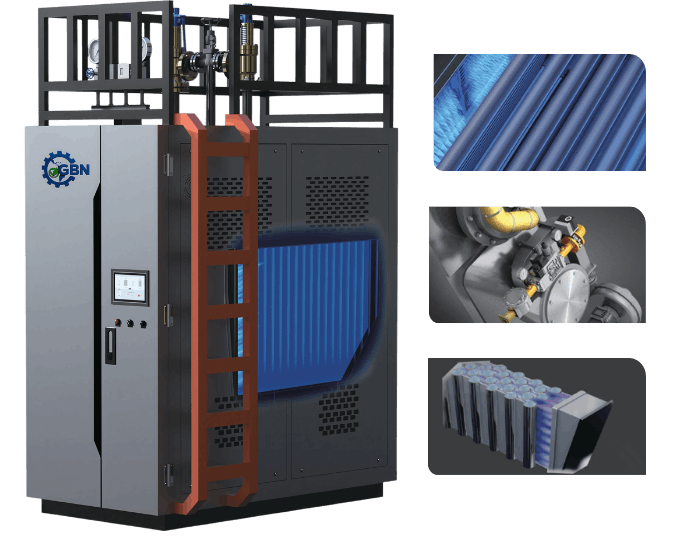 O Gerador de Vapor Instantâneo de Condensação GBN foi desenvolvido com tecnologia de combustão planar ultra-baixo nitrogênio, composta por dezenas de milhares de microchamas combinadas a um corpo tubular refrigerado a água.